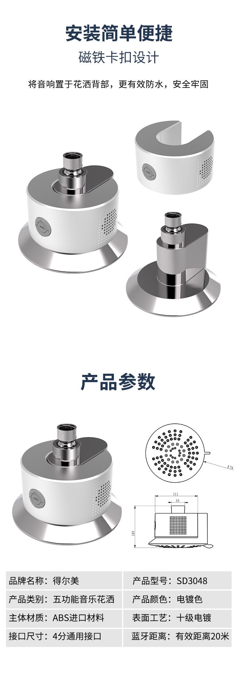 SD3048 5功能音樂蓮蓬頭